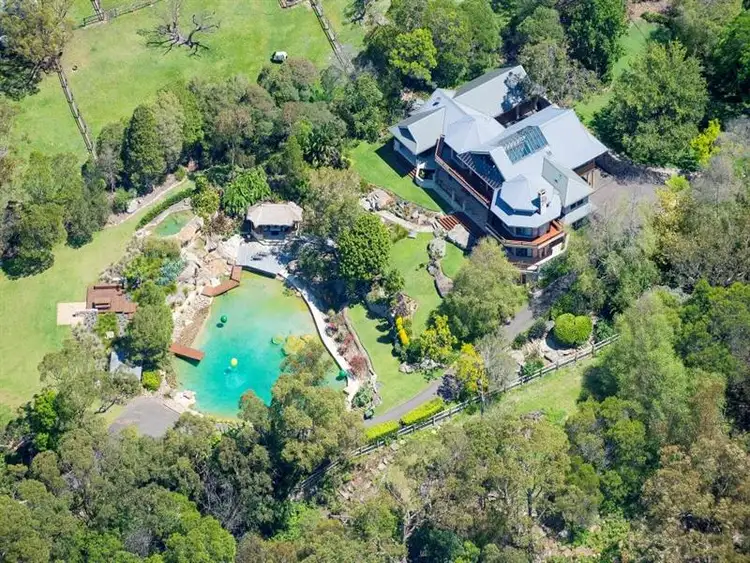 A separate self-contained two bedroom guest retreat, fitted out with modern kitchen and bathroom plus living and dining areas opening on to a large terrace, sits above a four car lock-up garage which could be converted into stables. Adjacent is an acoustically modified music/rumpus room and gym which sits above a large machinery shed, currently housing a further six cars and hoist, that could easily accommodate a helicopter.