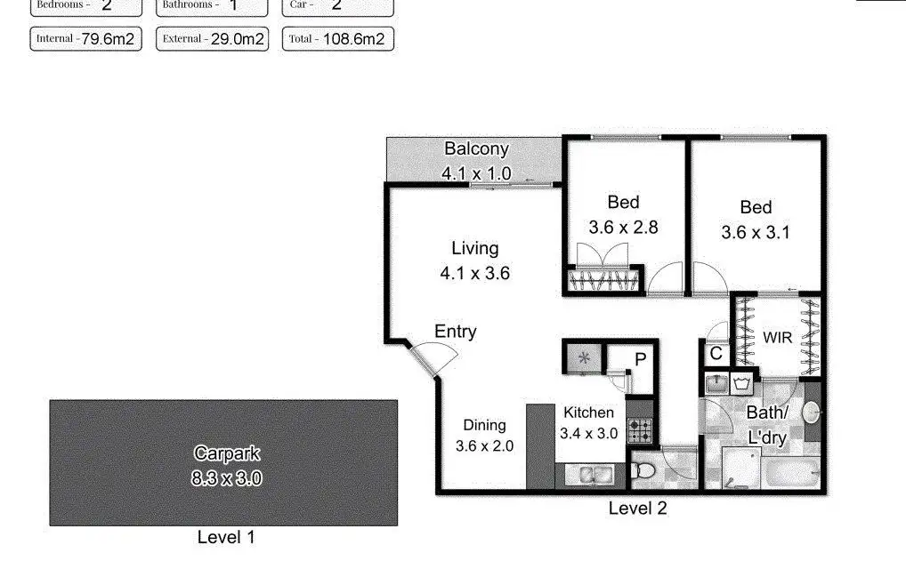 2 Bed • 1 Bath • 1 Car
