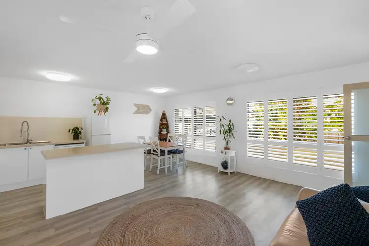 This well-presented unit features a thoughtfully designed layout, with attention to detail evident throughout. The property boasts a warm and inviting ambiance, perfect for those seeking a peaceful retreat by the beach. Upon entering, you are greeted by a spacious living area that seamlessly connects to a modern kitchen. The kitchen is equipped with high-quality appliances, soft close drawers, ample storage space, and a breakfast bar, making it an ideal space for cooking and entertaining.