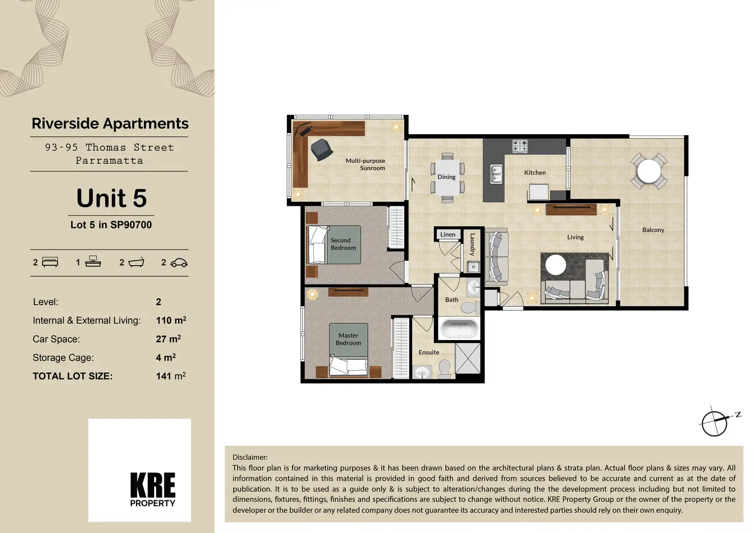 “Riverside Oasis • Modern 2 Bedroom Apartment • Multipurpose Sunroom • 2 Car Spaces”