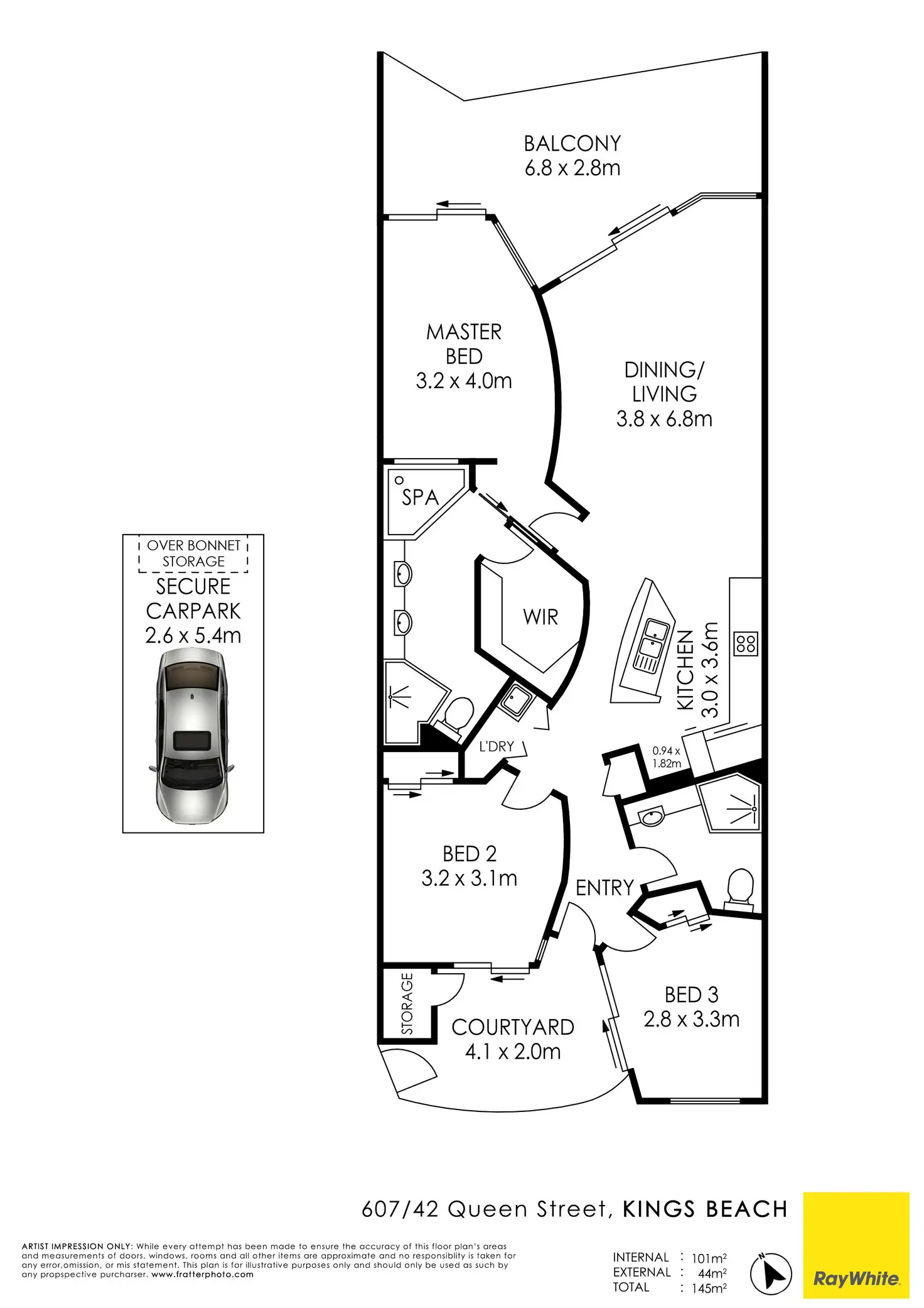 • Secure underground car parking with over the bonnet storage