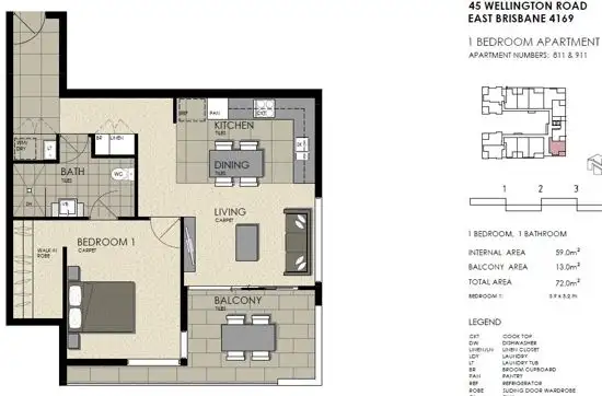1 Bed • 1 Bath • 1 Car • 72m²