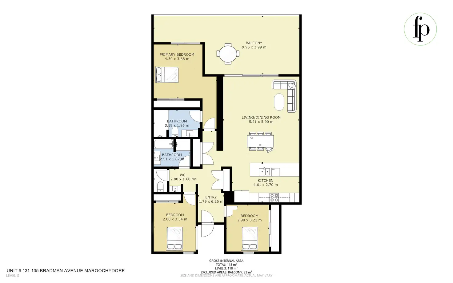 • Spacious Master suite with ensuite and direct access to the balcony, plus two additional large bedrooms, each with built-in robes