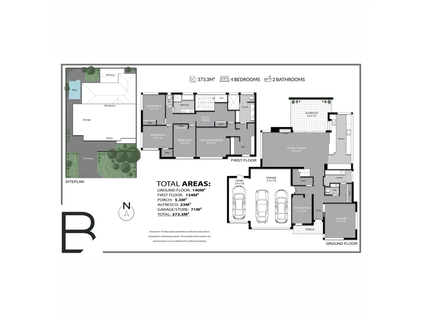 Beyond an attractive facade lies a practical ground-level floor plan where a home office and separate theatre room grace the front part of the residence. Also only inches away are an under-stair storeroom, a powder room and a large laundry with external/side access for drying.