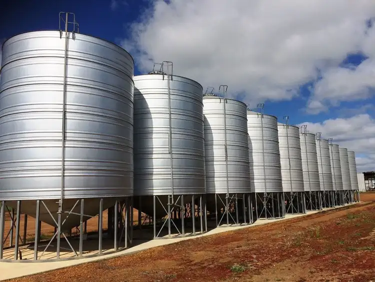 Very impressive line-up of 21 Silos, including 12 x 2700 bushel Moylan Silos, all on cement pads, also fuel storage includes 4500 ltr, 4000 ltr & 2000 ltr fuel tanks .